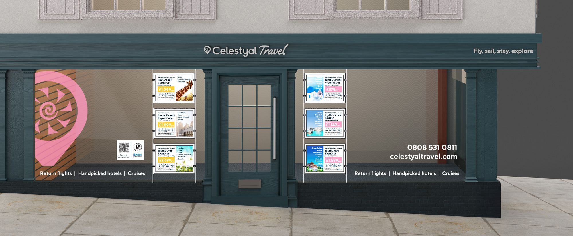 Led the development of Celestyal Travel, shaping its visual identity, tone, and overall brand aesthetic for Celestyal’s new packaged holiday offering.