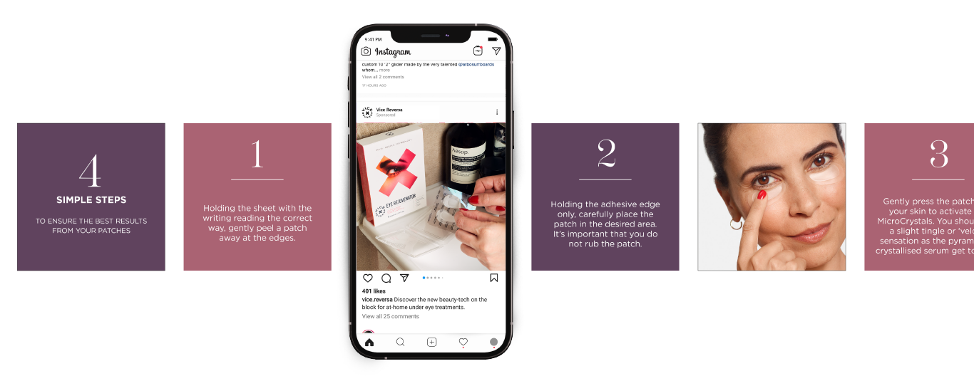 I was commissioned to create a range of social media assets for Vice Reversa, a beauty brand specialising in innovative Micro Crystal skincare patches. The project involved developing both static carousel posts and engaging video content, using a mix of raw footage, motion graphics, and animation.