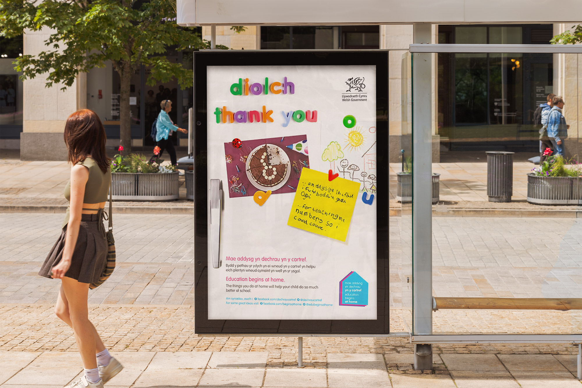 As part of the design team, I contributed to the Education Begins at Home campaign – a Welsh Government initiative encouraging parents to take a more active role in their children’s education. The campaign highlighted how simple, everyday moments at home can have a powerful impact on a child’s learning and development.